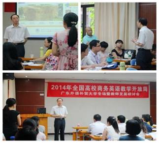 专家讲座上,郭院长从自身教学经历出发,与前来听课的外校老师分享了他对商英课程的独到见解。包括分析全英商务课程的教学目标,用事实论证全英商务课程成功最关键的三大因素--优质的生源、师资和有效的教学过程管理,如何着重培养学生的逻辑思辨能力、学习能力和动手能力等。郭院长同时以会计学原理为例,向大家介绍具有“2013年度教育部来华留学英语授课品牌课程”和“2013年广东省精品资源共享课程”等荣誉的会计学国内外网络课程的建设过程。